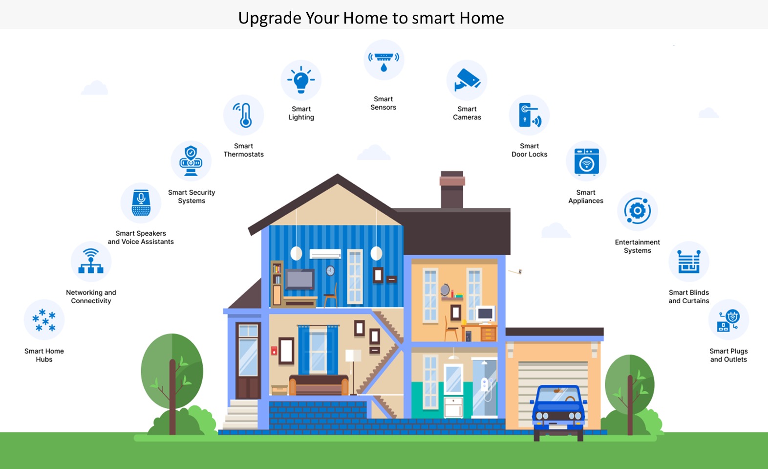 Security Systems : Smart locks, cameras, motion detectors, and alarms.